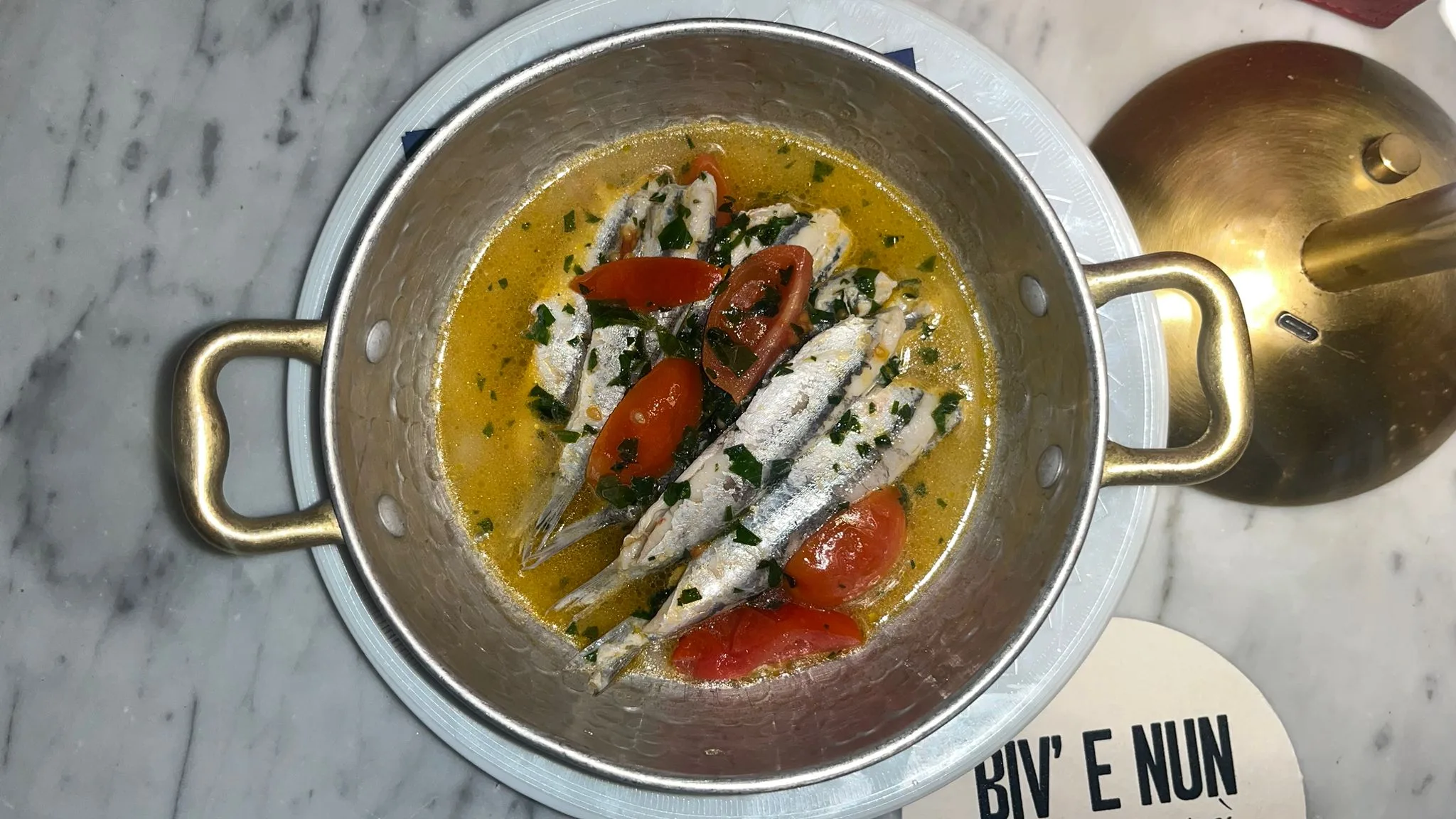 Gli stessi principi hanno ispirato anche un’antichissima ricetta salernitana: le alici ‘a piattella. Per la ricetta tradizionale abbiamo chiesto ad Annapaola Capasso, giovane chef di Cantina Verace, l’osteria di mare che si trova in una traversa del centro di Salerno. Qui Gianluca Collina, discendente di una storica famiglia salernitana di pescatori e uno dei quattro soci titolari del locale, propone varietà di pescato che rispettano rigorosamente la stagionalità e la territorialità: lampughe, triglie, palamite, sarde e alici straordinarie, tanto per citarne alcune.