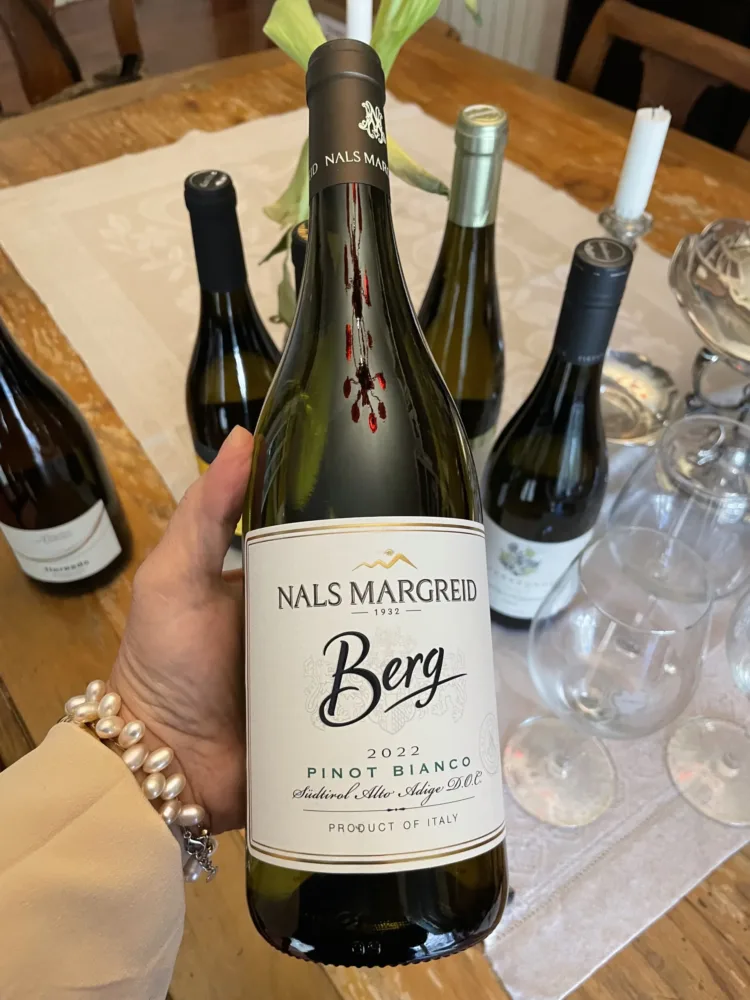 Pinot Bianco Berg Nals Magreid nasce tra i 300/ 350m s.l.m in Val d’Adige. Fa sia acciaio che botte grande è un vino meno aromatico ma fine in bocca con nota alcolica calibrata, frutta gialla, fiori di tiglio e biancospino, mele e miele ed erba secca lasciano la bocca fresca e fragrante con un leggero finale ammandorlato.