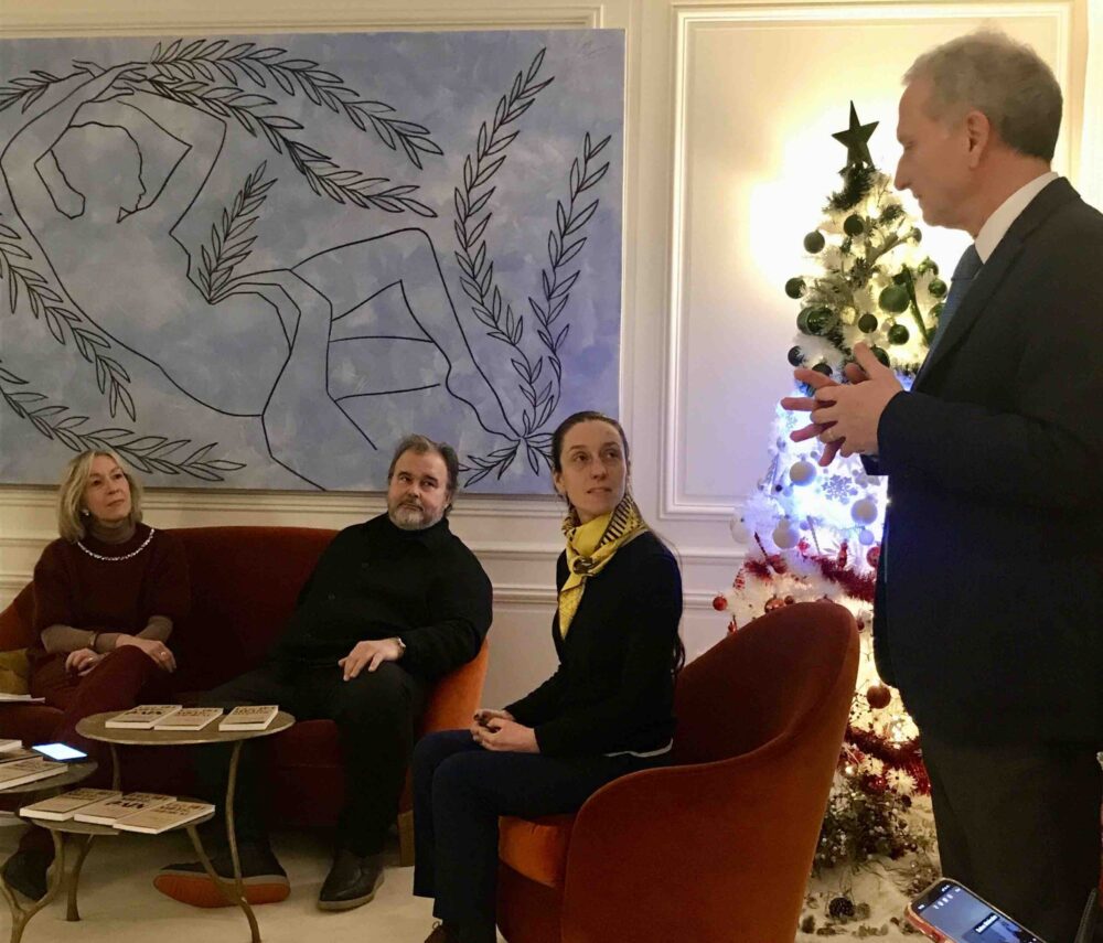 Si è parlato tanto anche di pane, presente la famosa panettiera Apollonia Poilâne e in degustazione pure il cioccolato di Modica di Simone Sabadì “affinato”, quindi solo con lungo contatto, non nell’impasto, come ad esempio pepe-vervena oppure camomilla, i due gusti presentati in Residenza. La serata è stata condotta da Domenico Biscardi, giornalista di “Pasticceria internazionale” e presente anche Alessandra Pierini, autrice insieme a Stéphane Solier. di una nuova traduzione in francese, commentata, de “La scienza in cucina e l’arte di mangiar bene” di Pellegrino Artusi. Les Ateliers de CriBeau invitano ogni mese al loro Salon Littéraire scrittrici e scrittori italiani, ma anche francesi che abbiano un legame con l’Italia, nella Residenza, l’appartamento che fu della celebre Céline, famosa per le sue scarpe e borse, lasciato allo Stato italiano per ringraziare la manodopera italiana che realizzava le sue creazioni e che tanto ha contribuito al suo successo. Un’altra storia di fruttuosa collaborazione tra l’Italia e la Francia.