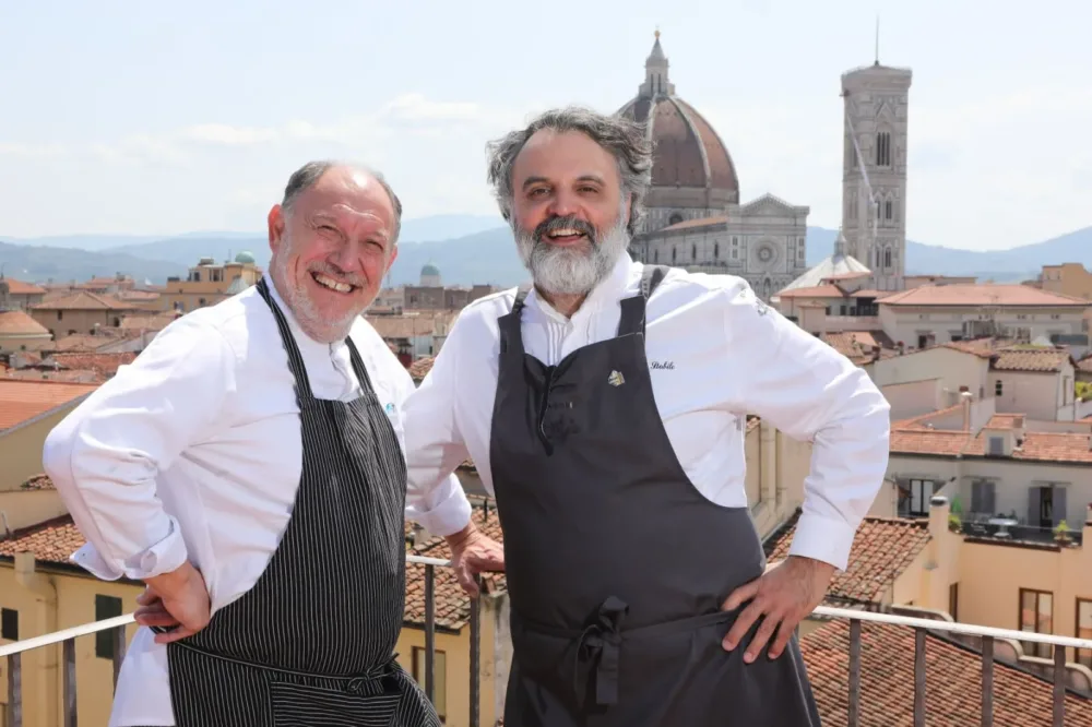 In un ambiente elegante e confortevole, con vista mozzafiato a 360° sulla città, abbiamo avuto l’occasione d’assaggiare a pranzo alcune delle prelibatezze della cucina fiorentina preparate per l’occasione da un tandem di chef d’eccezione. Richard Leimer del ristorante B-Roof e Marco Stabile, presidente dei ristoratori fiorentini e patron dell’Ora d’Aria, per una volta fuori dalla sua cucina.