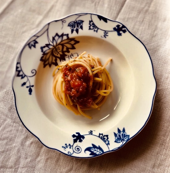 - Spaghetti con pomodoro grigliato e Colle Rotondella di Cantine Astroni