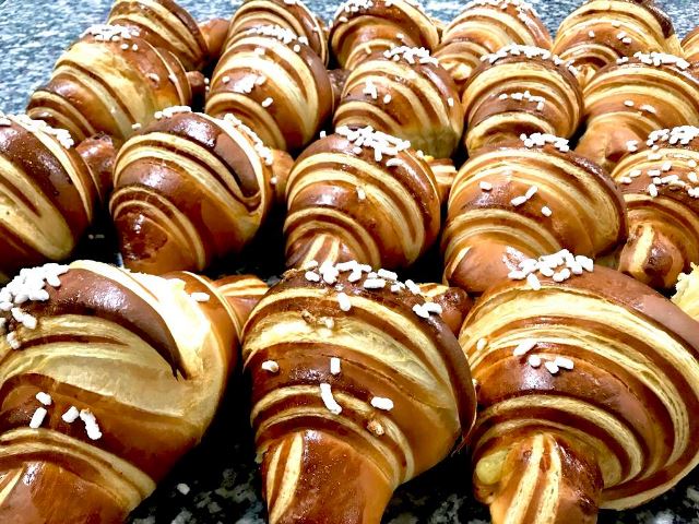 Il cornetto crema e amarena è una delle specialità più golose di Ischia. Il profumo è inebriante: i cornetti all’ischitana si mangiano soprattutto di mattina, appena sfornati, quasi bollenti. Sono soffici e leggeri, con una sfoglia esterna fragrante e una consistenza interna unica, grazie alla lavorazione artigianale e alla speciale unione di brioche e sfoglia. Un’altra particolarità è anche nel ripieno: la crema pasticcera e l’amarena, infatti, vengono inserite prima della cottura in forno.