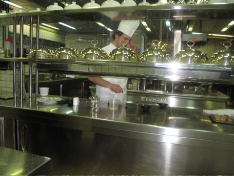 Cinque tavoli cinque per il mosaico ed uno, geniale, in cucina, che consiglio a tutti gli appassionati, per meglio rendersi conto che qui pare di stare a Zurigo. Caciara zero. Si sentirebbe volare una mosca, se potesse avere accesso ad una cucina che definire linda è riduttivo. Nino mi dice:” ho fortissimamente voluto questa possibilità, perché i miei ragazzi siano obbligati a muoversi con precisione e concentrazione. Non serve parlare, ognuno di noi sa esattamente quello che deve fare e quando lo deve fare”.
