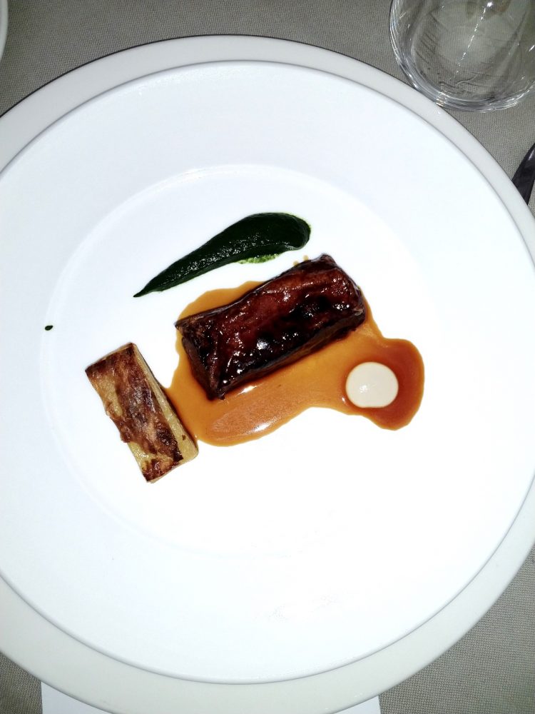 Lingotto di vitello fondente come un saltimbocca alla romana, spinaci e Chablis