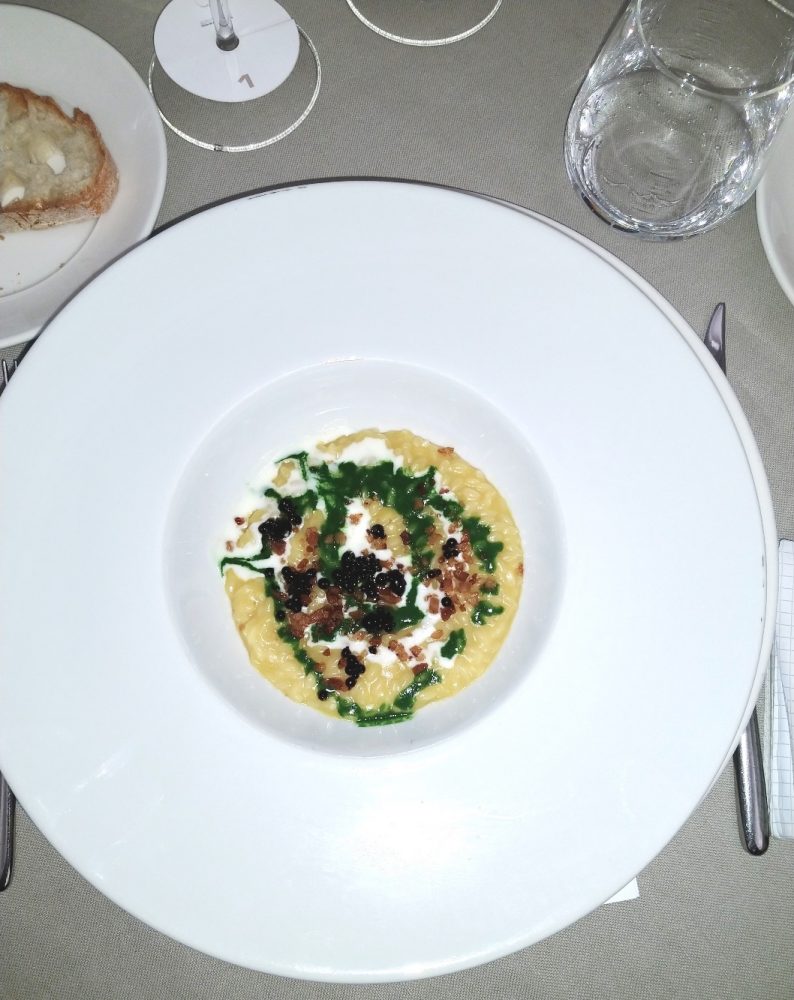 Riso di semola all’amatriciana di pomodorino giallo, Pecorino di Fossa e aceto balsamico invecchiato;