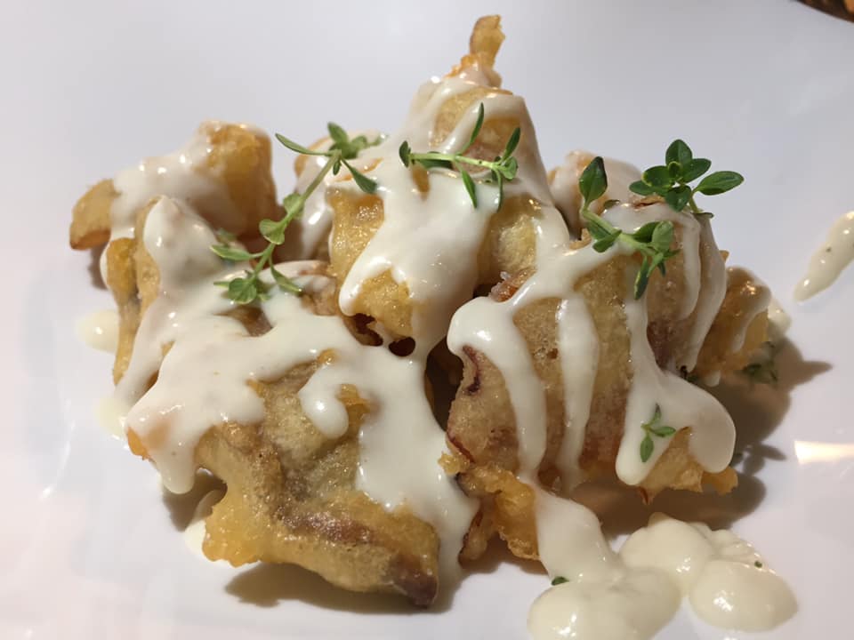Jacopa, zeppole di fiori di zucchina e crema di bufala