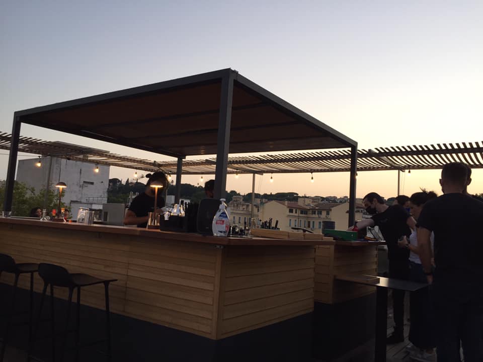L’ambiente è pimpante, il personale colto e motivato sul cibo, sul vino e su cocktail. La terrazza rapidamente si svuota e si riempe, soprattutto di coppie ma anche di qualche gruppetto di amici e famigliola.