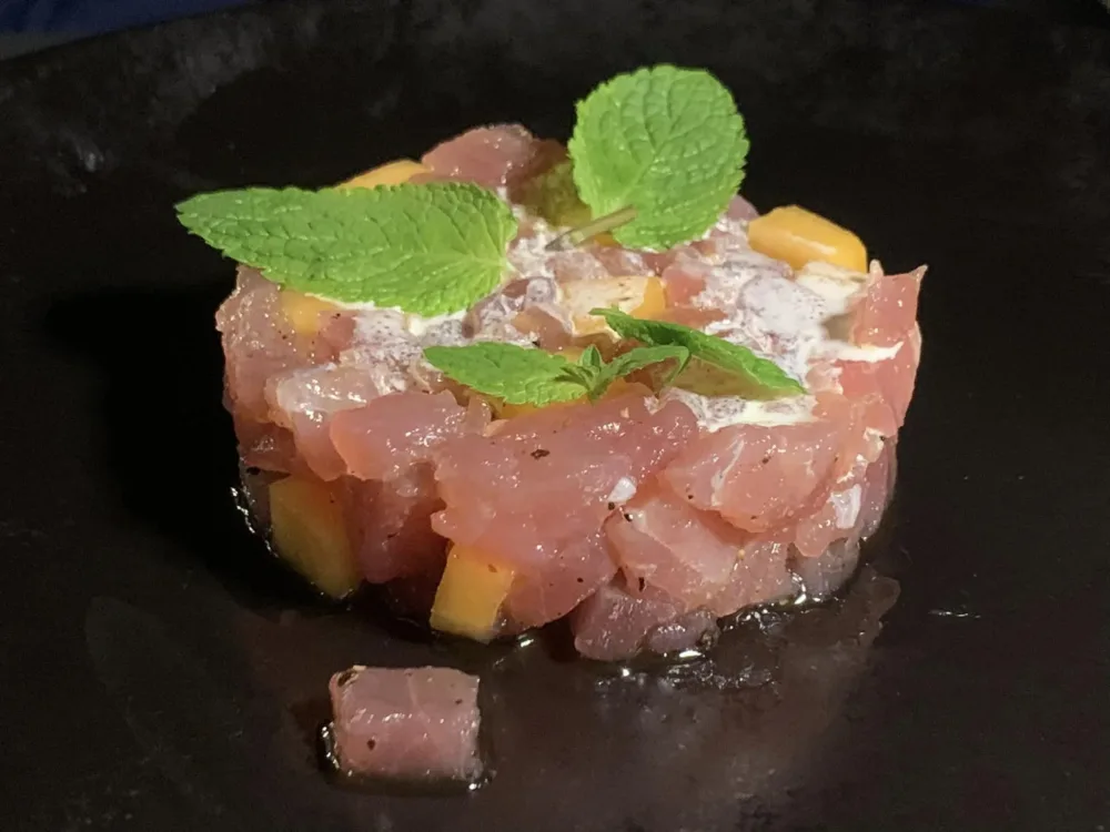 Ci siamo dunque goduti l’ultimo gazpacho estivo, fresco e aromatico; così come la tartare di tonno rosso, con menta e melone.