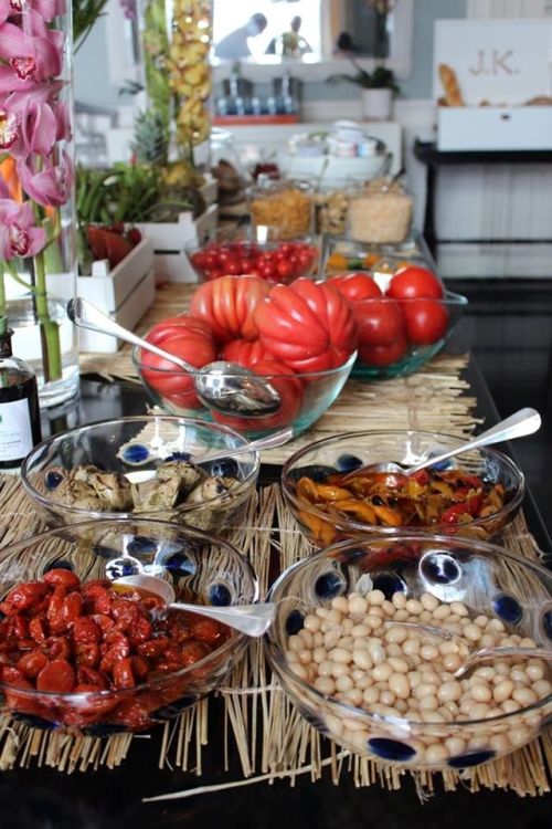 Un buffet con pochi prodotti, tutti selezionati e di altissima qualità. Mozzarella di bufala campana e ricotta, fior di latte, pomodori cuore di bue, fagioli di Controne, olive ammaccate del Cilento, solo per citarne alcuni.