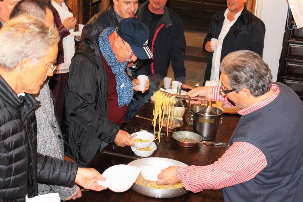 La festa degli assaggi per gli ospiti intervenuti, si inizia con l’aperitivo: noci dell’Alto Casertano e un bicchiere di vino, poi una zuppa di fagioli e baccalà, senza dimenticare il classico fritto, delicato e gustoso, il bianco e il rosso alla mescita sono della Cantina Telaro dell’areale di Roccamonfina, che accompagnano da sempre le bevute in Osteria con la falanghina e un buon aglianico, proposti pure in bottiglia con costi equi.
