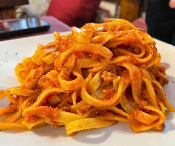Ho provato salumi e formaggi del tagliere di casa, attratto soprattutto dalla ventricina, in attesa che arrivasse la polenta al ragù di salsiccia, che già da sola poteva valere come pranzo completo. Morbida e gustosa, la polenta ha accompagnato in maniera esemplare il sugo semplice, arricchito da una salsiccia con un grasso contenuto.