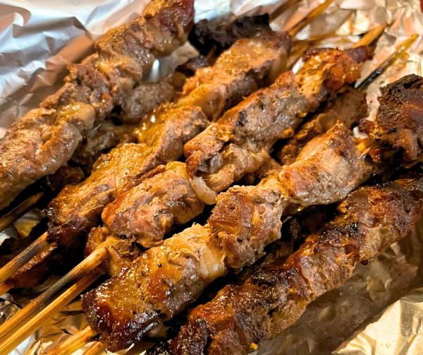 A seguire, una porzione di arrosticini, serviti in un foglio di alluminio per mantenerne temperatura e umidità. Ben cotta la carne di pecora, che crea dipendenza man mano che si sfilano i bocconi dallo spiedo in legno. Ho accompagnato il secondo con una patata al cartoccio, cotta con olio evo, sale grosso ed erbette aromatiche.