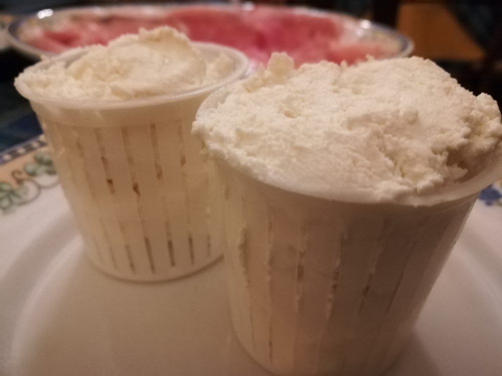 Cominciamo quindi con l’antipasto composto da una Frittatina di dolcissime Cipolle locali, scioglievole Prosciutto Crudo di Venticano, Lardo sempre di Venticano stagionato in erbe varie tra cui spicca piacevolmente il Rosmarino, Ricottine sempre provenienti da Venticano (che, come ci fa notare Pino, prima venivano servite in canestrini naturali di vimini ma che ora per le leggi attuali devono essere poste nella plastica per “motivi igienici”, motivi che però spesso si scontrano con le belle tradizioni!) e per finire uno sfizioso tegamino tenuto caldo da una candela e contenente una Zuppetta di fagioli Cannellini esaltati dal buonissimo Olio extra vergine di oliva proveniente da Ceppaloni e dal profumatissimo Origano di Montevergine.