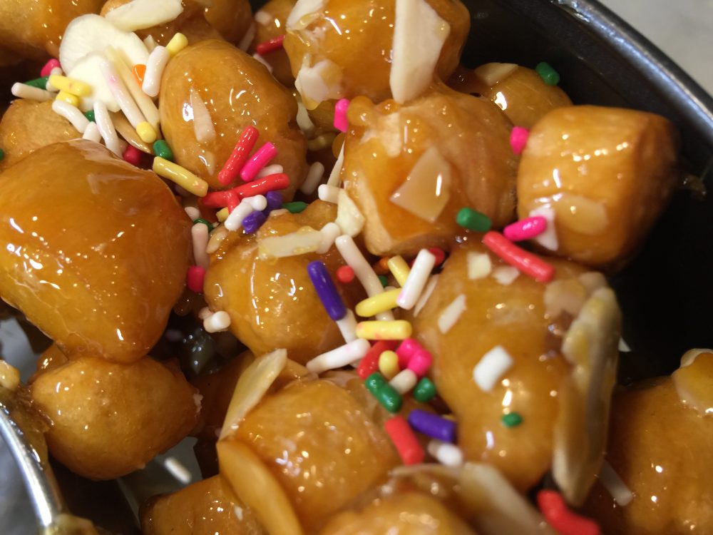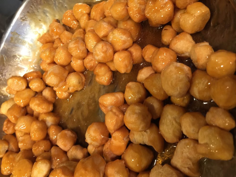 Versare nel composto i nostri dadini e le scaglie di mandorle, amalgamare aiutandoci con un cucchiaio di legno, e riporli su un piano dove gli daremo la forma desiderata (le mani dovranno essere umide).
