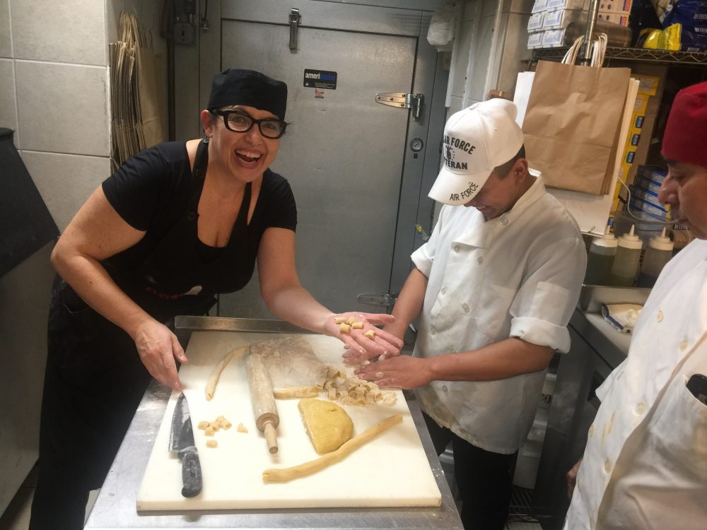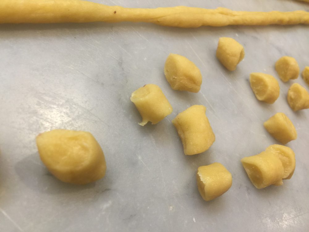 Lasciarlo riposare per 30 minuti per poi procedere nel tagliarlo in piccole parti e formare dei cordoncini sottili (1 cm circa) che a loro volta taglieremo in piccoli dadini.