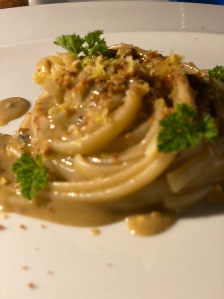 La Crestarella – Linguine salsa di cozze, battuta di cozze, bottarga e limone