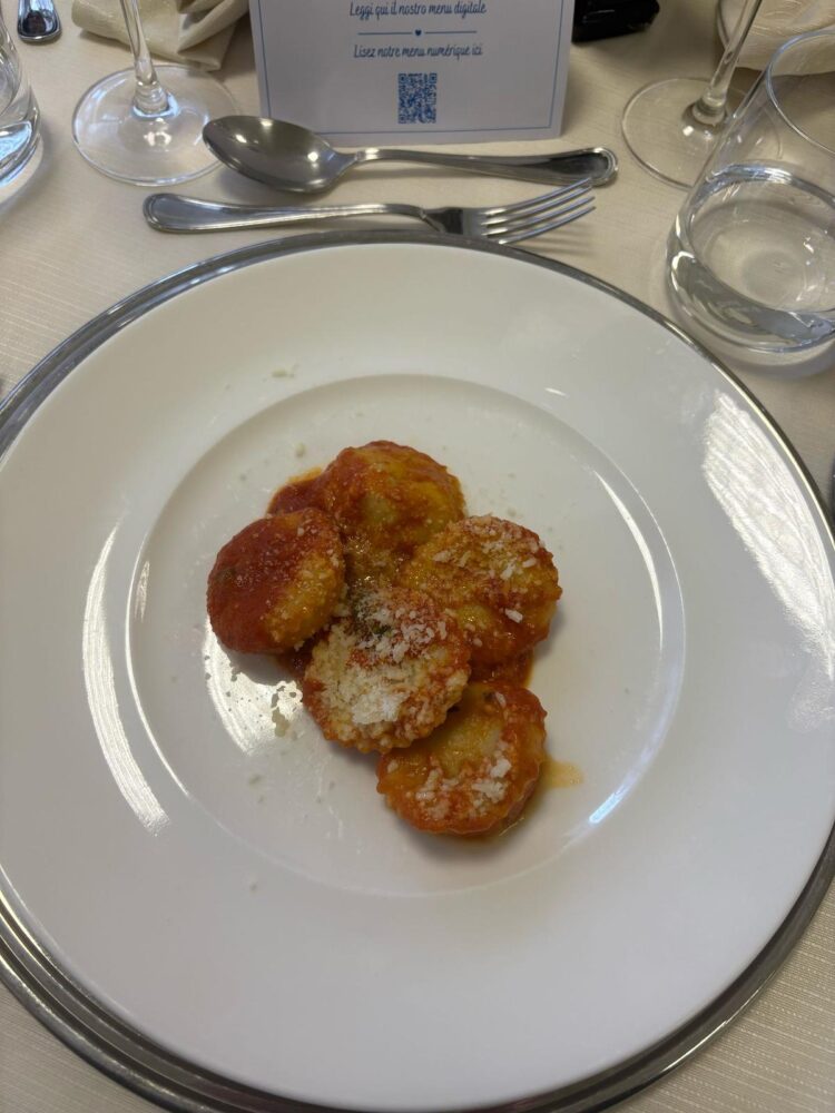 E poi il primo per antonomasia, i ravioli capresi. “I ravioli sono un piatto tipico dell’isola di Capri – si legge nella pubblicazione redatta sia nella tradizionale forma cartacea che in quella moderna, digitale con qrcode – bottoni di pasta fresca farciti con caciotta e serviti con sugo di pomodoro al basilico. Si tratta di un primo piatto povero senza carne che si prepara con gli ingredienti comuni nelle case contadine dell’isola”. Per i totani e patate la scuola alberghiera dell’isola azzurra ha scelto la variante anacaprese, quella in bianco, al forno. “I pescatori capresi – hanno spiegato gli studenti – durante le loro notti di pesca catturavano totani facendo brillare nel mare le famose lampare, le luci delle loro imbarcazioni. Il piatto nasce proprio dall’ingegno di questi pescatori che, tornando a casa, cercavano un modo semplice ma gustoso di cucinare il loro pescato con gli ingredienti disponibili localmente come le patate”.