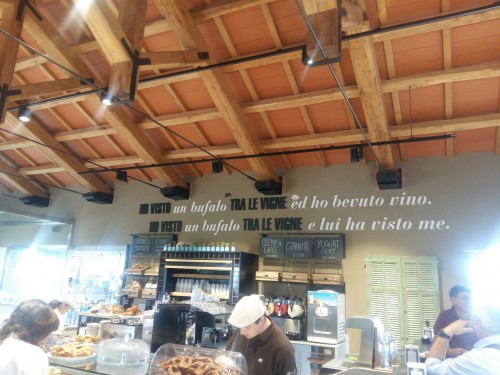 Un invitante colpo d’occhio senza dubbio il bancone refrigerato con yogurt e budini al latte di bufala in tantissimi gusti diversi, così come l’angolo verde con piantine grasse e vasetti in terracotta con su impresso il bufalo, logo dell’azienda.