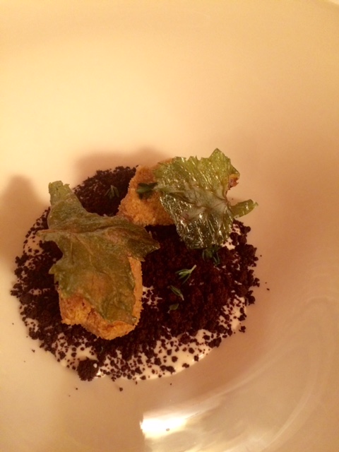 Il menù da me degustato si è aperto con amuse bouche composta da cialda di patate, baccalà e panna acida alla cola, piccoli sandwich di mandorle e paté di polpo, panino mignon al vapore con ragù di lepre e infine una sfera di olive e Aperol spriz che deve essere assaporata in un sol boccone per sprigionare il suo contenuto. In questo piatto l’eco orientale è evidente ma miscelato a molta personalità.