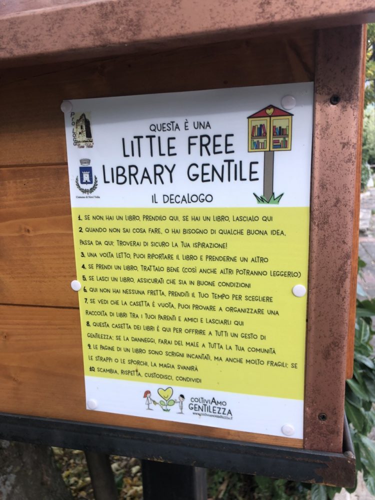 Dentro, non pennuti ma libri, a disposizione di chiunque voglia prenderne o donarne. Una “libreria gentile”, che a me è piaciuta tanto, una idea stupenda, in un’epoca in cui la carta stampata, va sempre più scomparendo. E, anche quando trovi qualcuno con cui credi possa iniziare uno scambio librario, intellettualmente stimolante, poi, alla fine, ti rendi conto che è un fuoco fatuo. Peccato.