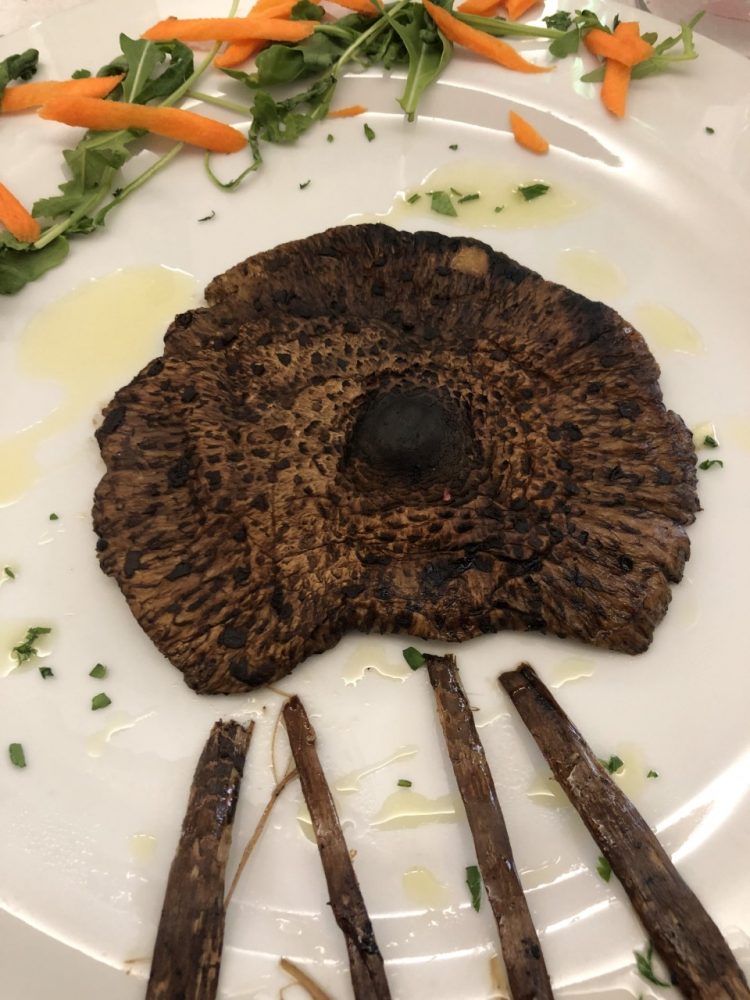 Alla Montanara, sono un cavallo di battaglia, raccolti nei boschi circostanti, sotto castagni e faggi. Porcini, mazze di tamburo, chiodini, li trovi facilmente nel cesto all’ingresso. Per finferli (gallinacci) e ovuli, devi essere fortunato. Io non lo sono stato, ma è andata bene uguale. Buona la mazza di tamburo alla griglia, come pure le tagliatelle coi porcini, anche se più che una tagliatella, sembrava uno scialatiello cresciuto troppo.