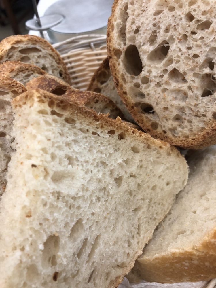Ben due tipi di pane, nel cestino, bianco e semi integrale. Il vino della casa è un blend di aglianico e montepulciano, che si fa bere, a patto di non fare troppo gli “speziali”.