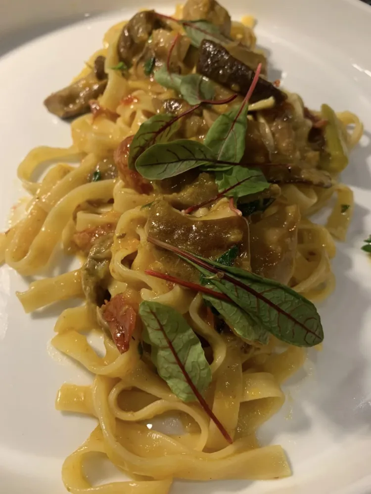 Un’aria nuova, il locale completamente ridisegnato, un grande dehor all’ingresso dove godersi il fresco della montagna a 750 metri. Un grande bancone bar per cocktail e vari cicchetti prima e dopo cena, qualche piatto di mare inserito in un filone sostanzialmente tradizionale in cui la continuità è rappresentata dal piatto iconico che ha fatto la fortuna del locale, le tagliatelle ai funghi porcini di cui la zona è ricchissima.