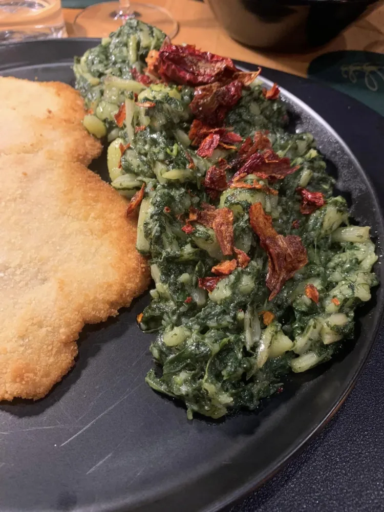 La Montanara a Novi Velia, la cotoletta con foglie e patate con peperone crusco