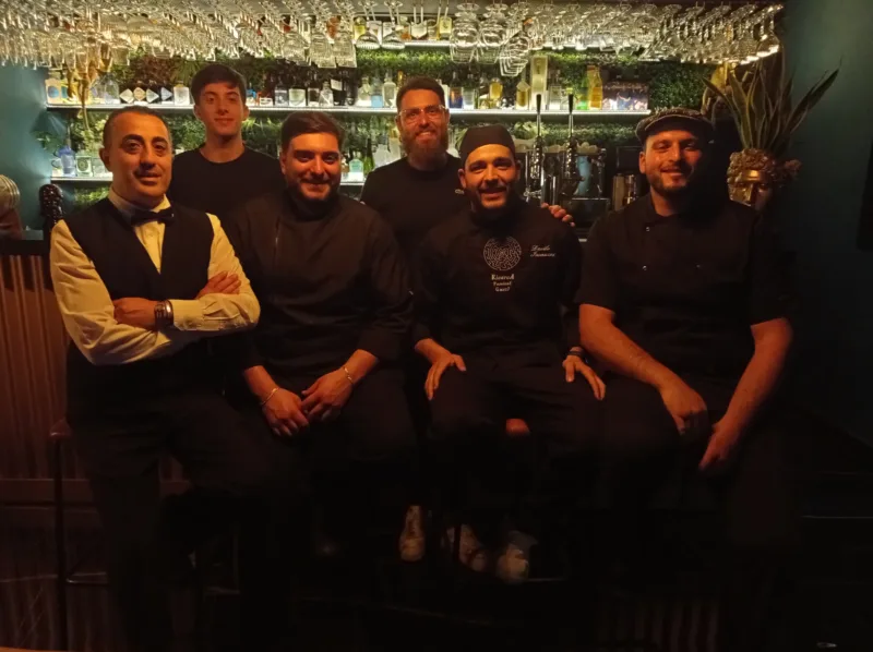 Ristorante La Montanara – Brigata di cucina e di sala. I fratelli Daniel e Carmine. Il secondo da dx seduto chef Iannuzzi
