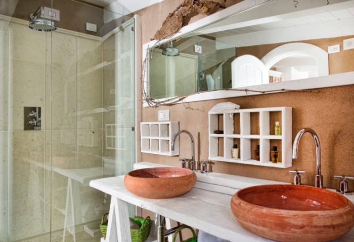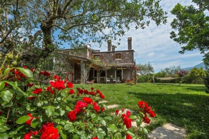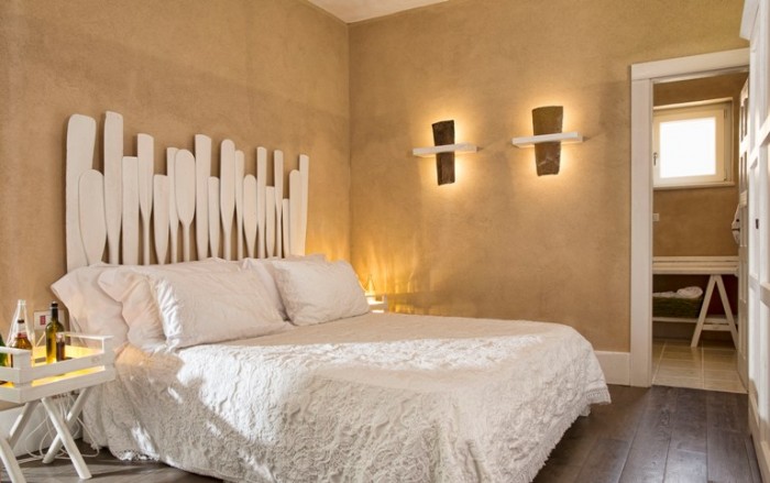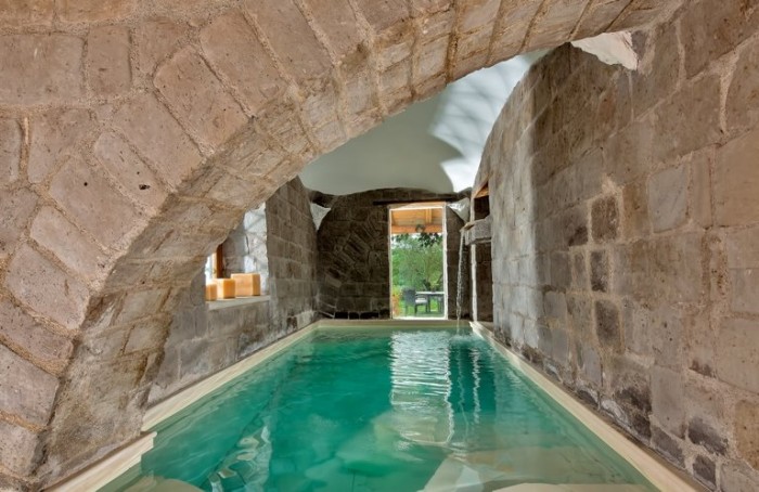 Immersa in una tenuta di 14 ettari, la country house nasce dal recupero di un vecchio casale ed è stata ridisegnata in armonia col paesaggio circostante, arredata con materiali naturali e di recupero come i coppi d’argilla o le casse di legno dei cantieri navali. Izzo è infatti un affermato imprenditore impegnato nel campo delle forniture navali: la bellezza di questa operazione è proprio nel materia di recupero che ha usato con precisione e pignoleria.