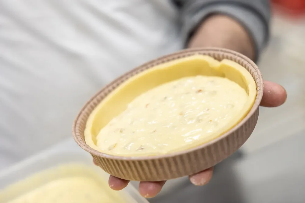 “L’alternativa alla classica pastiera napoletana è stata un’idea nata all’Expo Cook di Palermo 2023, riprodotta all’interno del mio panificio per esaltare i prodotti del territorio siciliano: arancia candita, capperi di Salina semi canditi, cioccolato di Modica e mandorle di Avola tostate, ad impreziosire la classica ricotta di pecora. La sua base di pasta frolla è realizzata con farina di grani antichi siciliani, proveniente dall’ettaro di terreno adottato 3 Novembre del 2021” ci racconta Natale.