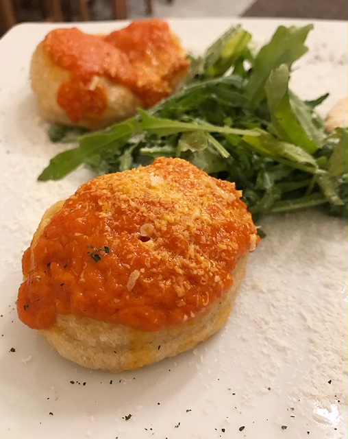 Sono inoltre presenti anche hamburger di chianina, bistecche di angus, e qualche piatto dall’estro fantasioso come il bufalotto, composto da salsiccia di maialino nero casertano servita con fonduta di mozzarella e patate. La friggitoria – come le montanarine e gli arancini – è preparata anch’essa in loco da Alessio.