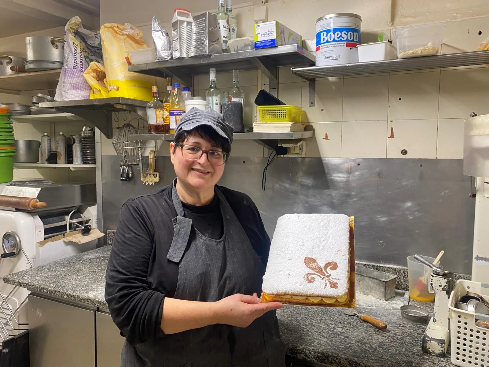 <<Oggi la schiacciata nel periodo di Carnevale si trova in tutte le pasticcerie della città, una volta erano esclusivamente i forni a realizzarla – spiega la signora Clara -, si tratta di un dolce che in origine era considerato povero proprio per la semplicità degli ingredienti: farina, uova, zucchero, l’immancabile strutto e il lievito che oggi è quello di birra ma una volta era esclusivamente pasta madre. Quindi non si tratta di una sorta di pan di Spagna come potrebbe sembrare a prima vista, ma una vera e propria schiacciata – come quella famosa da farcire con formaggi e salumi, tipico street food fiorentino – in versione dolce. Noi ci atteniamo alla ricetta di famiglia, la stessa che usava mio nonno dagli inizi del Novecento. Oggi della preparazione delle schiacciate se ne occupa mio figlio Francesco, che ha apportato alla ricetta base delle variazioni sia per quanto riguarda gli aromi che per i tempi di lievitazione. Oltre alla tradizionale buccia d’arancia grattugiata mio figlio usa la preziosa vaniglia del Madagascar che regala alla preparazione un profumo davvero intenso, un po’ il marchio di fabbrica delle nostre schiacciate. Accanto alla versione classica, nel corso degli anni si è aggiunta quella farcita che i fiorentini più tradizionalisti spesso considerano spuria. Noi preferiamo la crema diplomatica, c’è invece chi usa la panna o il cioccolato >>.