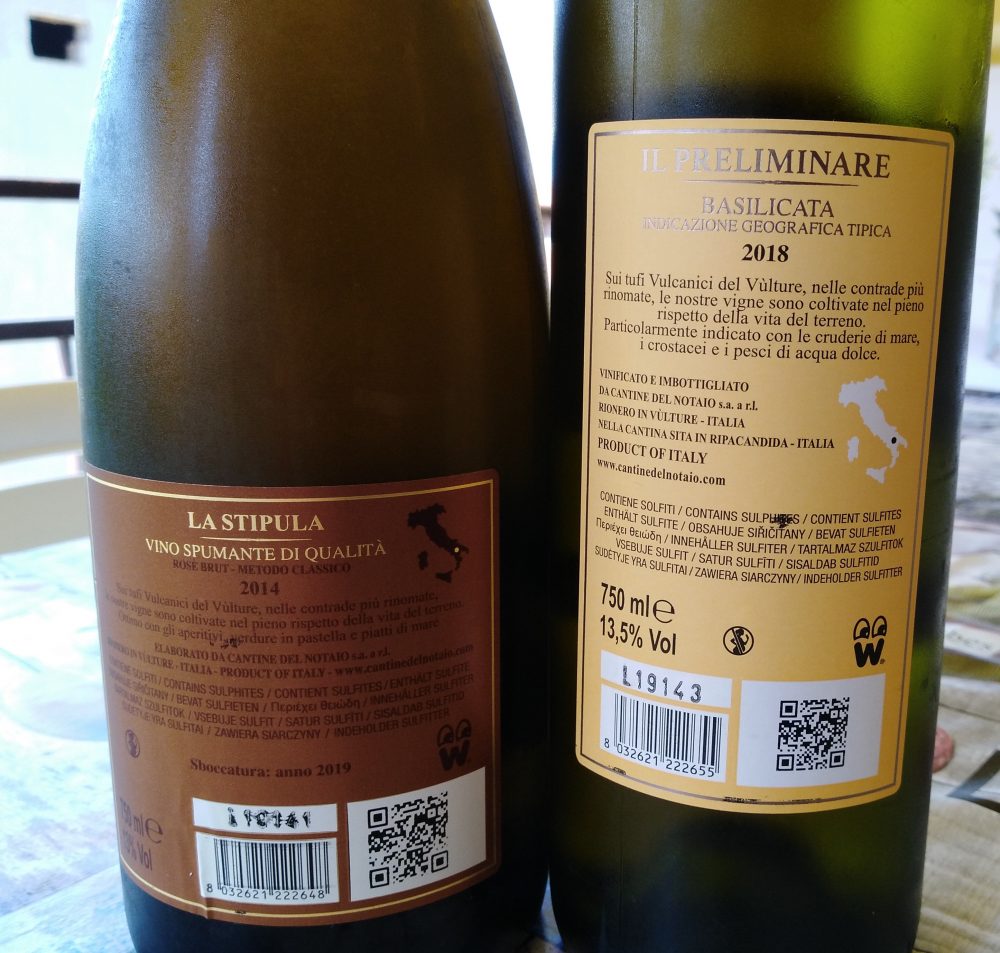 La Stipula Vino Spumante di Qualità Rosé Brut Metodo Classico 2014 e il Preliminare Bianco Basilicata Igt 2018 Cantine del Notaio