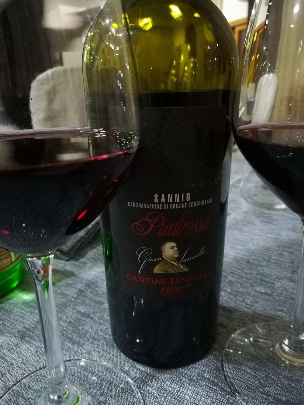 Accompagniamo la cena con un bel Piedirosso del Sannio della Cantina Iannella 1920. E a proposito di vini, a vista nel locale c’è una vetrinetta in cui c’è una piccola collezione di Donato.