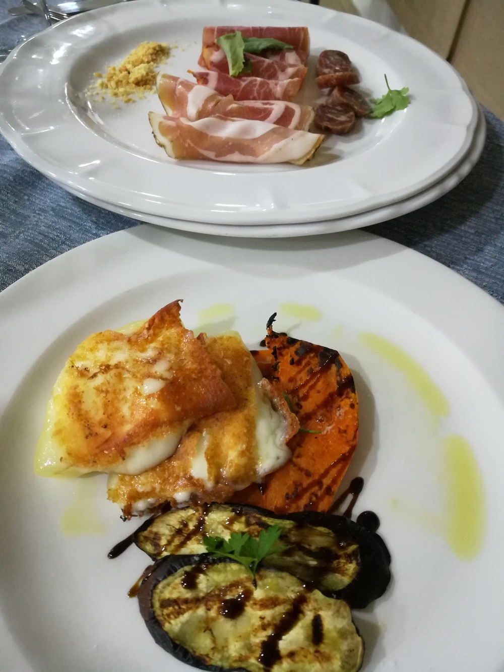 Ci vengono serviti quindi due assaggi a testa di primi: