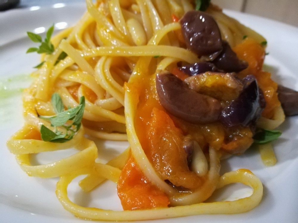 La taverna delle follie – Linguine con Olive Pinoli e Pomodorino Giallo