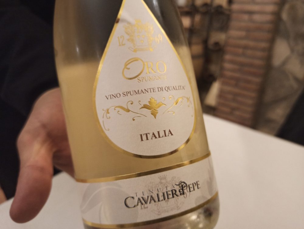 -un Aperitivo servito a tavola caratterizzato dalle bollicine dello Spumante Oro della Tenuta accompagnato da alcune semplici frittelline e dall’assaggio dell’ottimo olio “Tre Colli”;