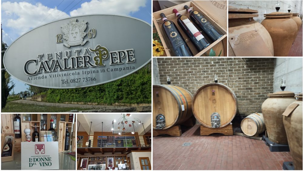 Siamo in una delle zone più note dell’Irpinia, quella del comprensorio della Docg Taurasi, e precisamente nel comune di Sant’Angelo all’Esca. Qui troviamo l’azienda vitivinicola Tenuta Cavalier Pepe che, oltre a produrre vini dai 60 ettari dei propri vigneti e olio dagli 11 ettari dei propri oliveti, accoglie nel proprio ristorante gli avventori che volessero assaporare pietanze con materie prime Irpine e, logicamente, degustare i prodotti della propria Cantina.