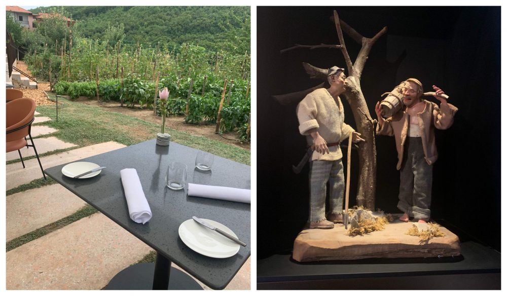 Ogni particolare del Palazzo, quasi mille metri quadri coperti, è curato con attenzione, l’esperienza che si propone qui è complessiva, globale, totalizzante. Appena si entra c’è la cucina a vista che diventa un quadro, ovunque i pastori del padre di Tonino che parlano con le mani. La sala è essenziale ed elegante, qui davvero il tovagliato sarebbe inutile. Ogni stanza è diversa dall’altra, e i bagni sono una stanza nella stanza. Poi c’è la piscina nell’orto. L’idea è creare il buen retiro dove godere della cucina di Cannavacciuolo, uno stile che a me ricorda il neoclassico Vissani per la capacità di creare abbinamenti incredibili fra le materie che si valorizzano a vicenda, coesistenze che hanno lo scopo di dare piacere a chi sta a tavola e non a chi deve mettere like su Istagram.