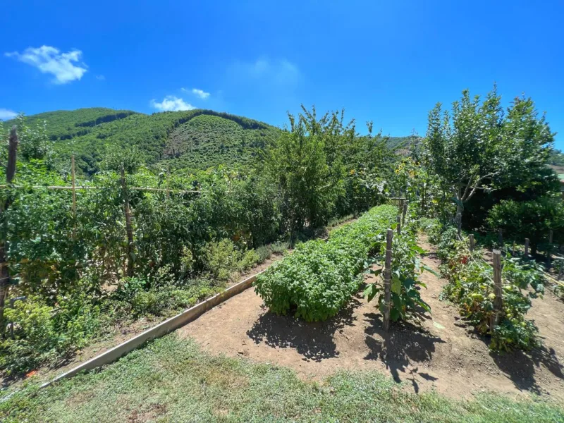In giardino più che la piscina attira lo sguardo un curatissimo e rigoglioso orto in cui, in stagione, i pomodori grandi e carnosi di Sorrento svettano carichi e colorati.