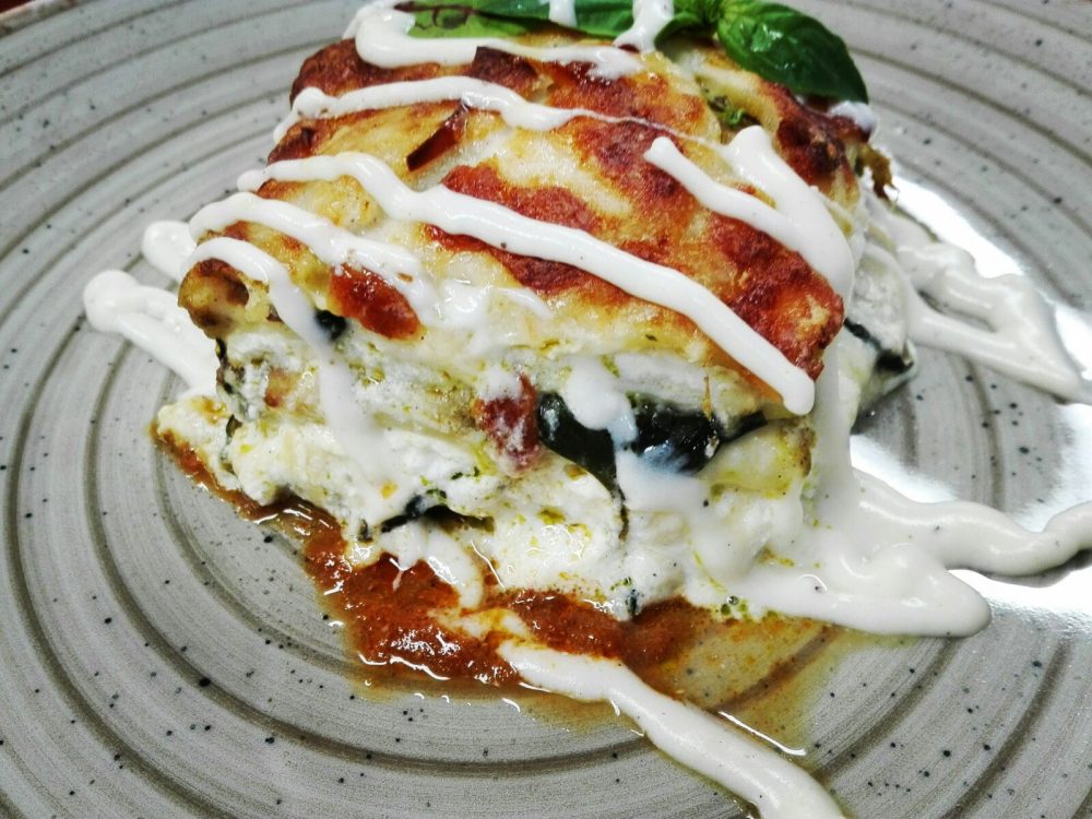 Copri con salsa besciamella, mozzarella e metti in forno a 175° per almeno 20 minuti.