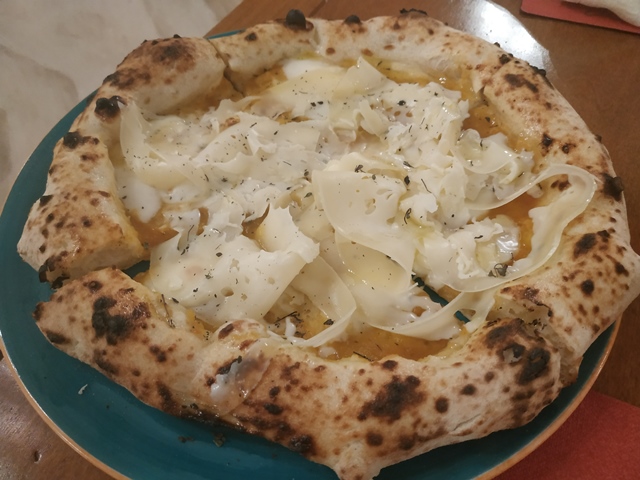 Eccezionale la sua Genovese (12€), realizzata con quattro diversi tipi di cipolla, un fondo di carne di vitello e fior di latte, completata dal Gold altamurano 40 mesi, salsiccia grassa locale, pepe e basilico.