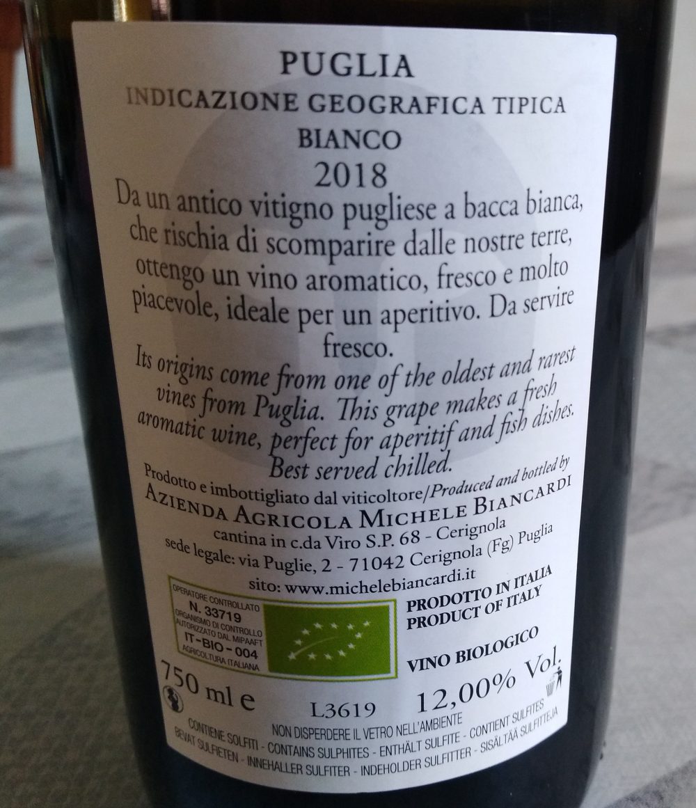 Controetichetta L’Insolito Bianco Puglia Igt 2018 Michele Biancardi