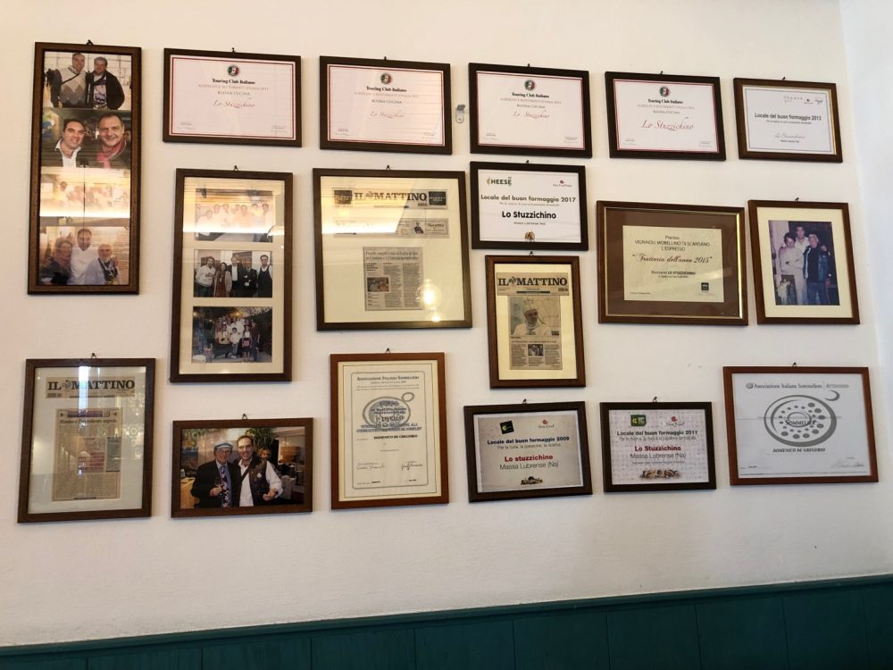 Lo Stuzzichino, la sala interna con alcuni dei riconoscimenti ricevuti
