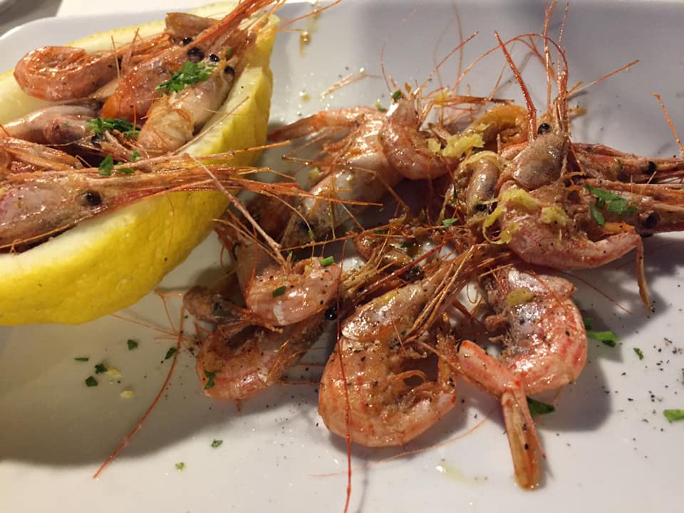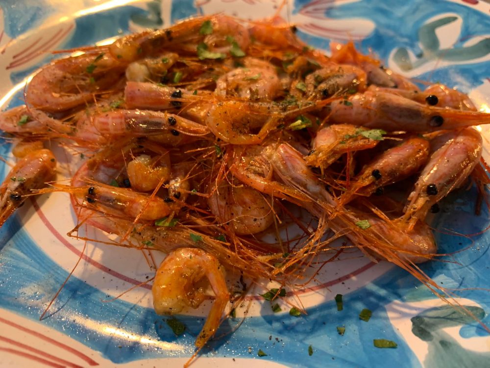 Lo Stuzzichino, i gamberi di nassa di Crapolla, semplicemente scottati con olio e pepe