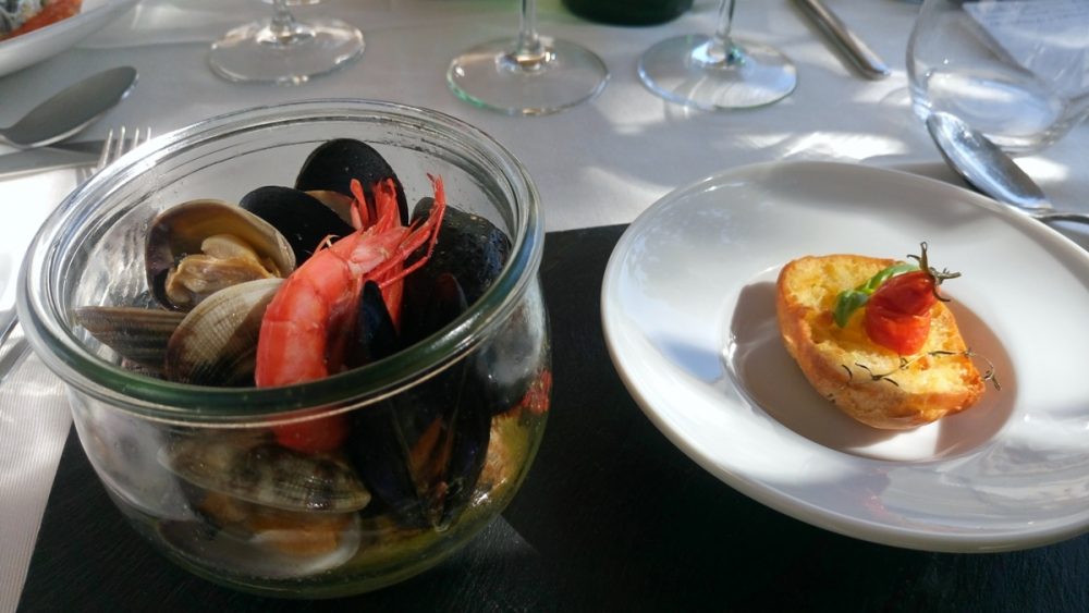 Sfizioso l’uso del boccaccio, ovvero un misto di mare cotto a bassa temperatura dove il mare viene imprigionato e portato a tavola, accompagnato da un mini “vascuotto” da lasciar ammorbidire con il brodo dei crostacei e dei frutti di mare.