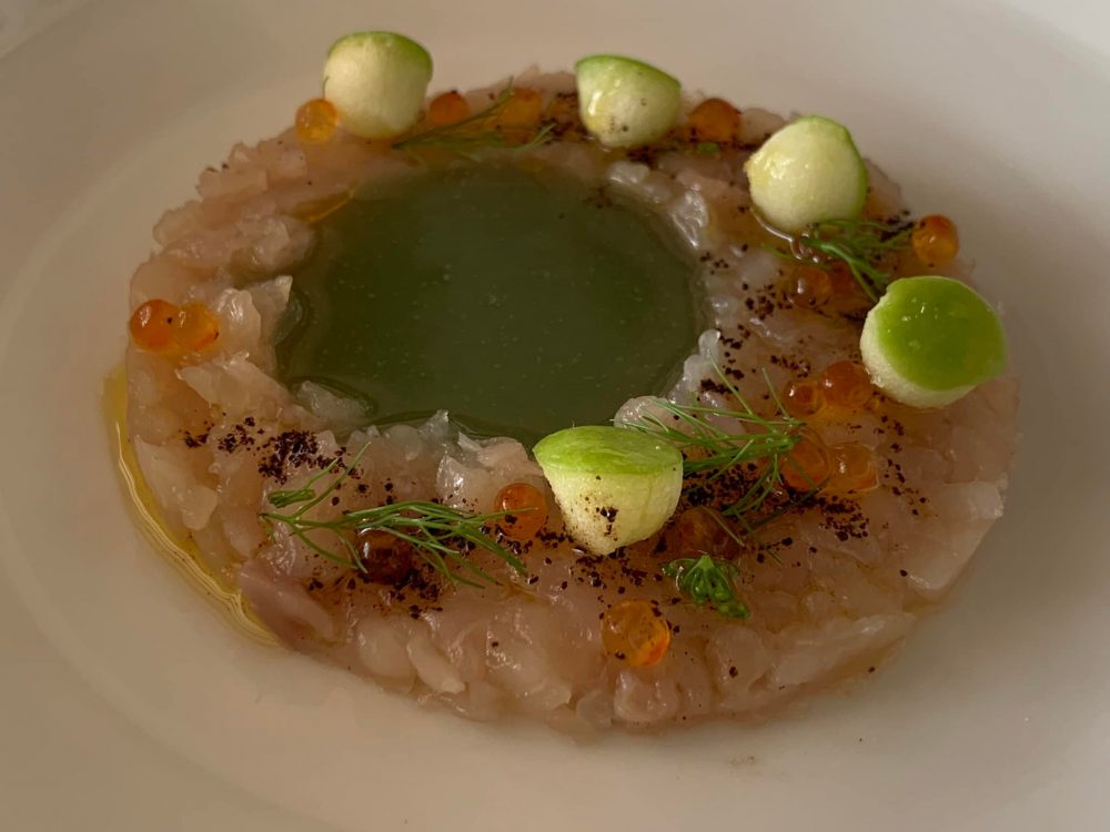 Locanda Petreja, crudo di trota con mela verde e salsa al finocchietto