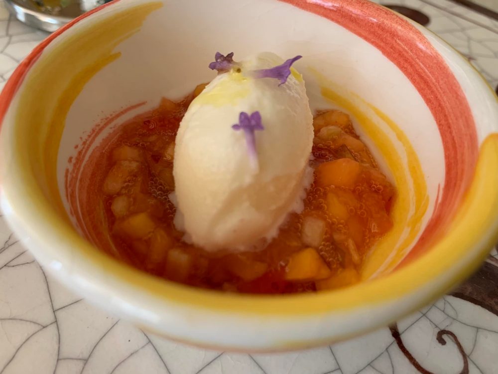Locanda Petreja, gelato alla lavanda su zuppetta di frutta