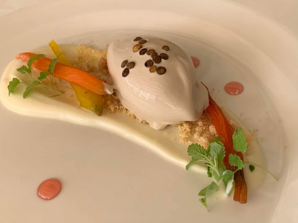 Locanda Petreja, gelato di lenticchie su cioccolato bianco acido